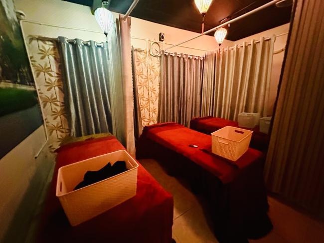 - THAI BODY MASSAGE: Liệu pháp massage Thái được thực hiện bằng cách dùng lực bàn tay tác động chậm và sâu vào phần lưng của cơ thể, các đầu ngón tay sẽ tiếp cận các lớp cơ, cảm nhận các mô sẹo để giúp phá vỡ các "nút thắt" cơ hoặc các dải mô cứng đang khiến bạn đau nhức.